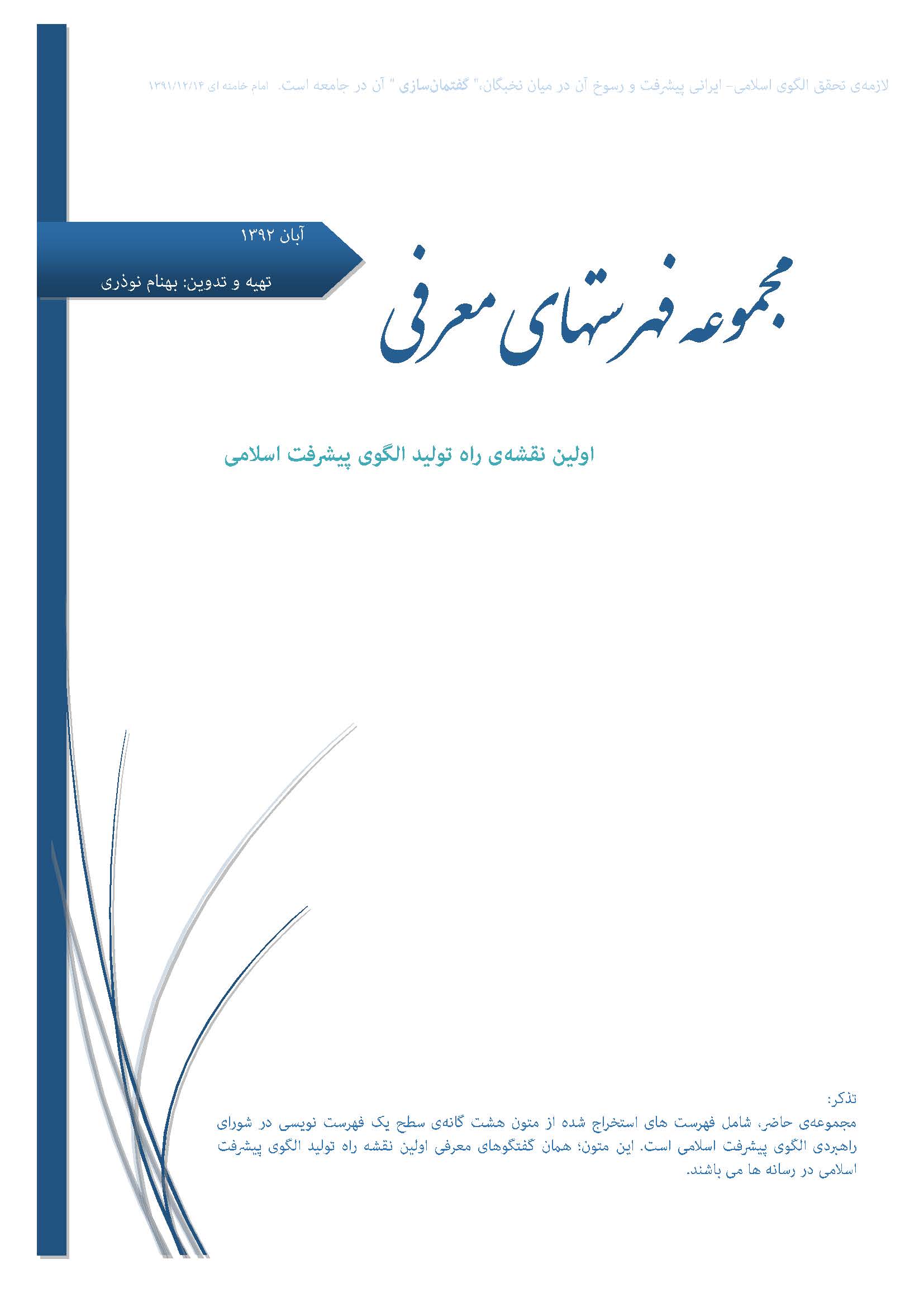تولید الگوی پیشرفت اسلامی نهاده است. با این روش به سرعت مسئله ی الگوی پیشرفت در
